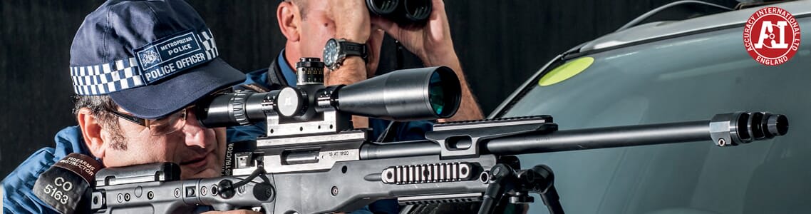 Continuing Accuracy International’s legacy of combat proven rifles is the AT, Accuracy Tactical, rifle. The Accuracy International AT features a proofed steel action, AI’s Quickloc quick release barrel system, mil-std-1913 action and forend rail, 6-lug 60° bolt with AI leaf spring extractor, three-position safety, two-stage trigger for adjustable trigger weight, detachable 10 round double stack magazine, fixed stock, adjustable cheekpiece, fixed buttpad with spacers, flush cup sling attachment points, and a double chamber standard muzzle brake. Designed for harsh environments and superior accuracy, the Accuracy International AT will withstand the battle and the war.